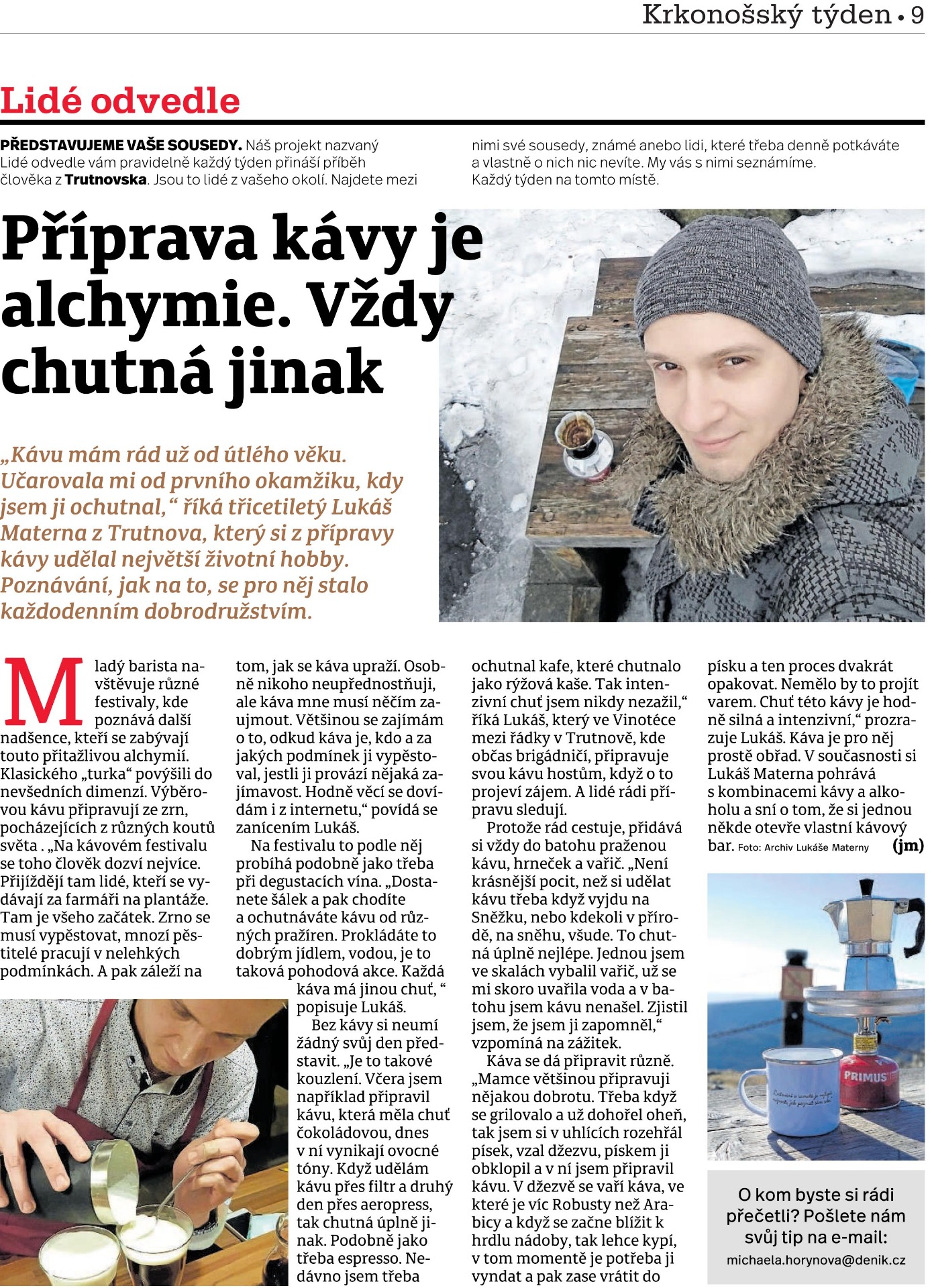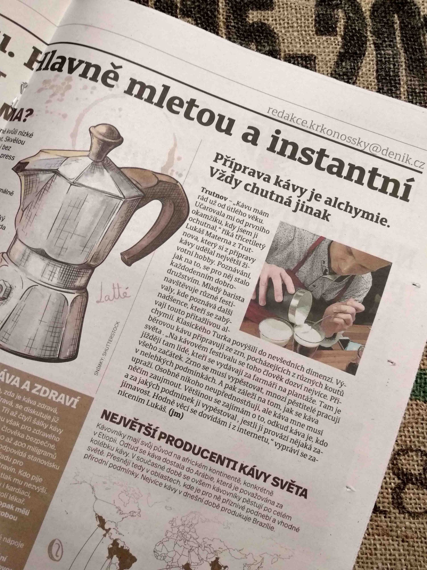 Mým snem je otevřít si vlastní kavárnu, ale tu zatím nemám, tak dělám kávu všude možně na světě. Třeba super to bylo ve vinotéce na Kryblici v Trutnově. Tak super, že se to dostalo i do novin.
